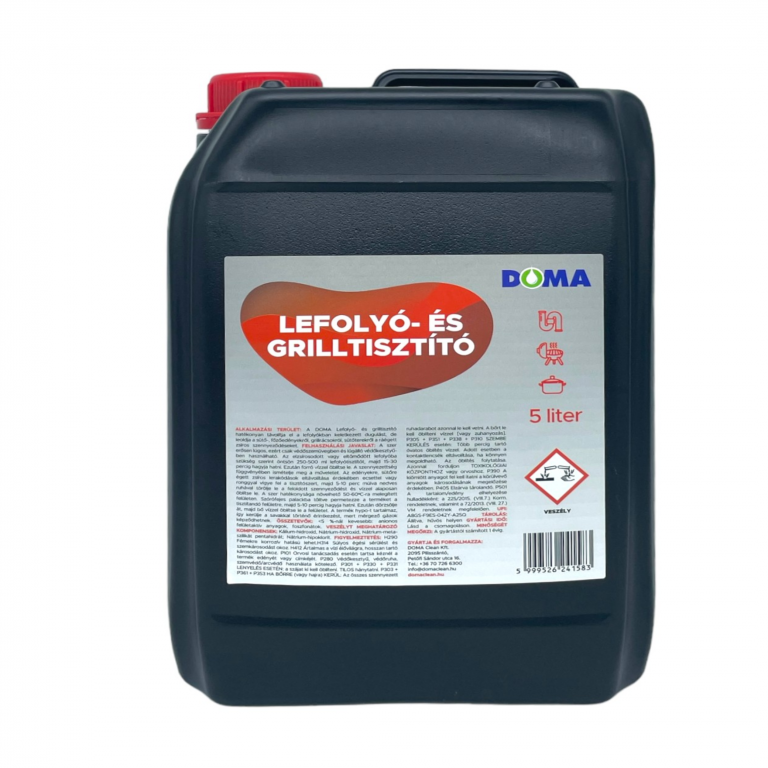 A DOMA Lefolyó- és grilltisztító hatékonyan távolítja el a lefolyókban keletkezett dugulást, de leoldja a sütő-, főzőedényekről, grillrácsokról, sütőterekről a ráégett zsíros szennyeződéseket.
